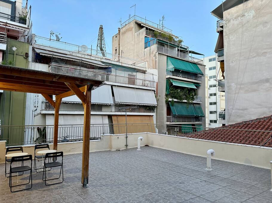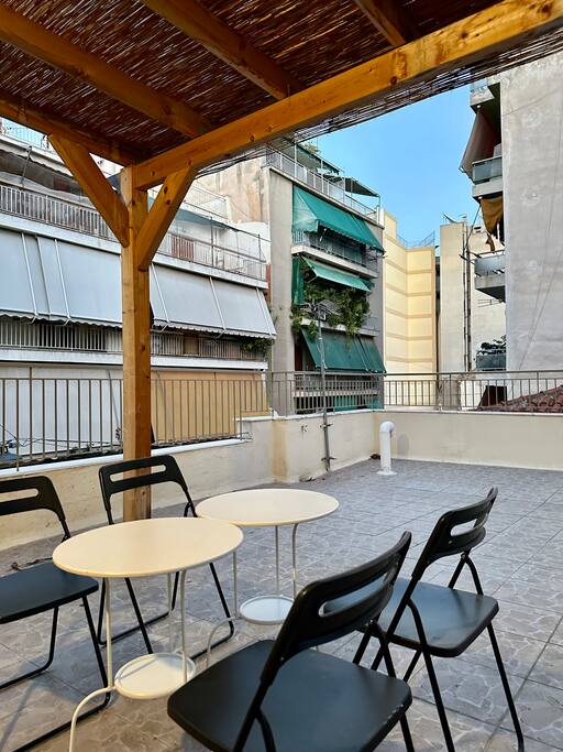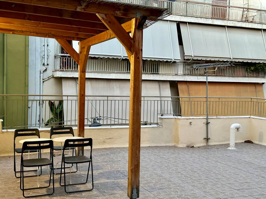 Two large bedrooms, a spacious living room with a 50inch TV (with 1 double sofa bed), fully equipped kitchen, bathroom (shower cabin) , a private terrace on the top of the building and balconies both front and back. The apartment was partially renovated with new furniture, original Terrazzo floors, high ceilings, keeping with the original Neo-classic Athenian style. Our cleaners strive to keep the apartment sparkling clean. It is fully equipped and fully air-conditioned for a comfortable stay. Hot water is always available through an electrical heating system. The kitchen is equipped with electric cooker, coffee maker, toaster, water kettle and all necessary appliances to cook or prepare a dinner or breakfast.