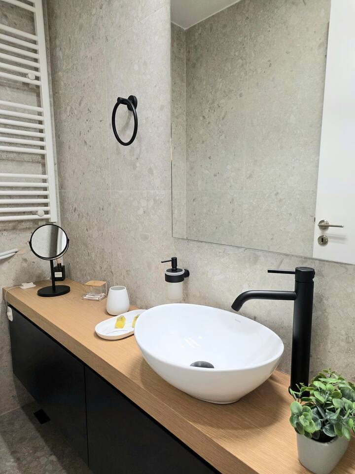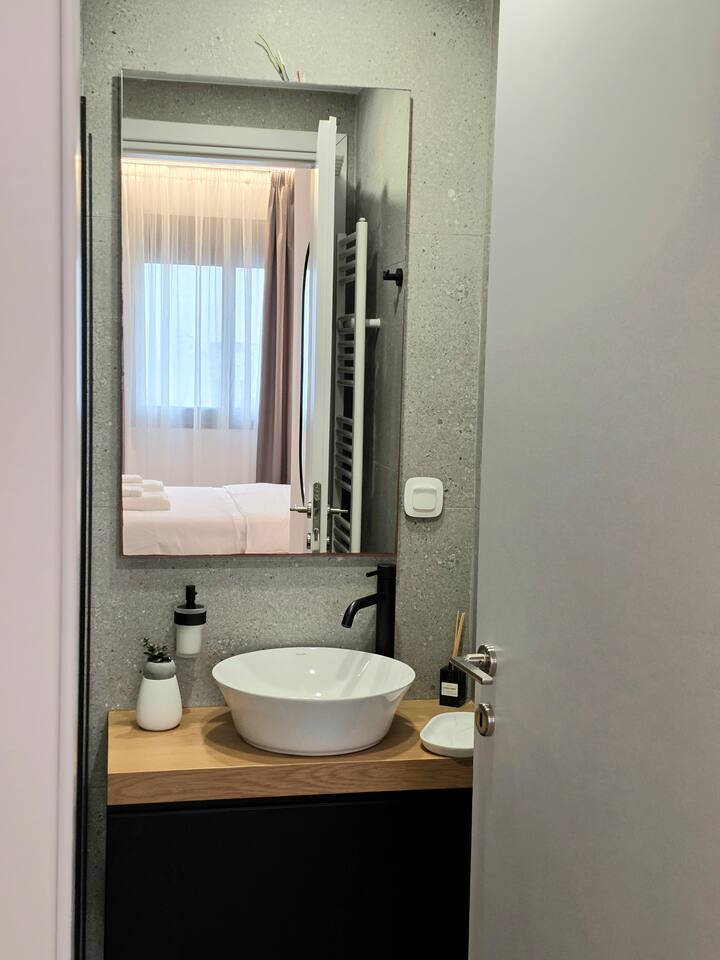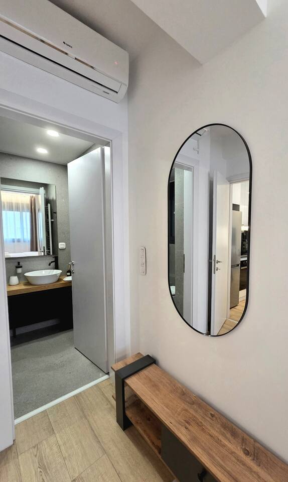 Experience Athens like a local without compromising on location. Just moments from the city center, you are perfectly placed to explore the Acropolis and Monastiraki as well as more local areas like Koukaki! Sleeping & Comfort The apartment features a Queen-size bed (160×200 cm) fitted with a premium, hypoallergenic all-season duvet. For your personalized comfort, we also provide an additional lightweight quilt/blanket so you can adjust the warmth to your preference. Bathrooms The apartment has 2 bathrooms. the first full bathroom is located in the bedroom (toilet, sink, shower). The second half bathroom is located in the living room (toilet and sink) A Pillow Menu Because a good night's sleep is essential, we offer a variety of different pillow types, including anatomical options to ensure you will find the perfect fit for your sleeping style. Premium Linens Experience the luxury of 100% high-quality white cotton linens. To ensure the highest standards of hygiene, all linens are professionally laundered after every stay. Flexible Space The living room sofa easily converts into a single or double bed, making this space ideal for couples, friends, or small families.