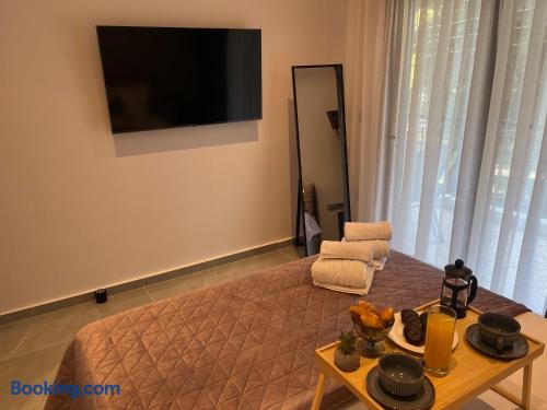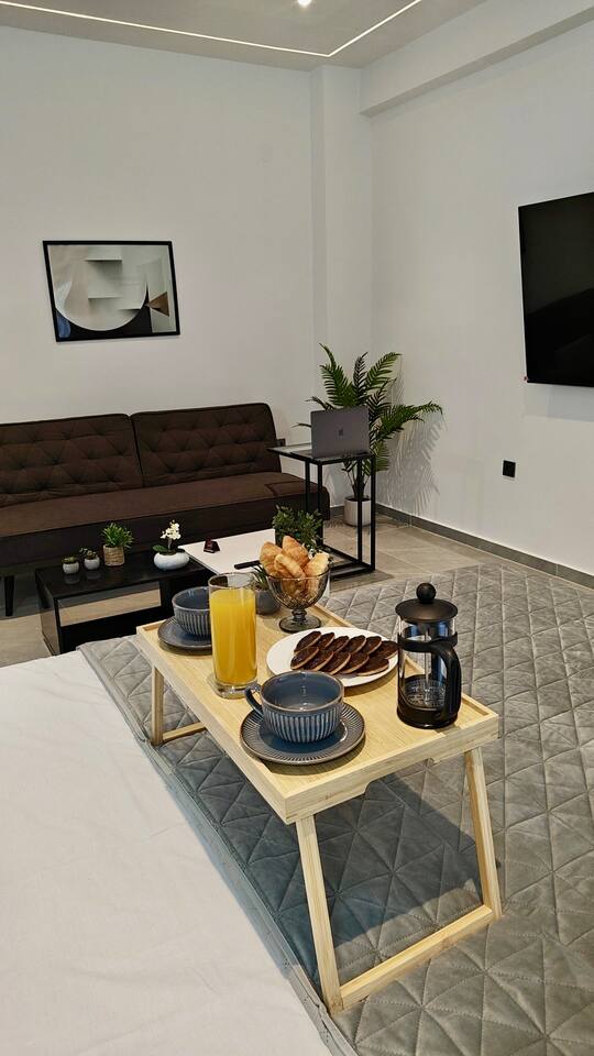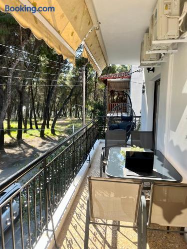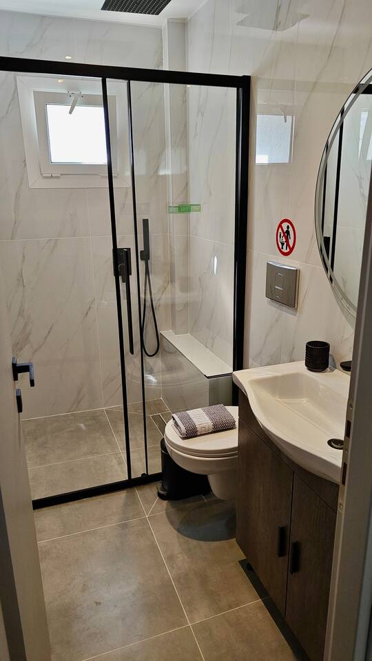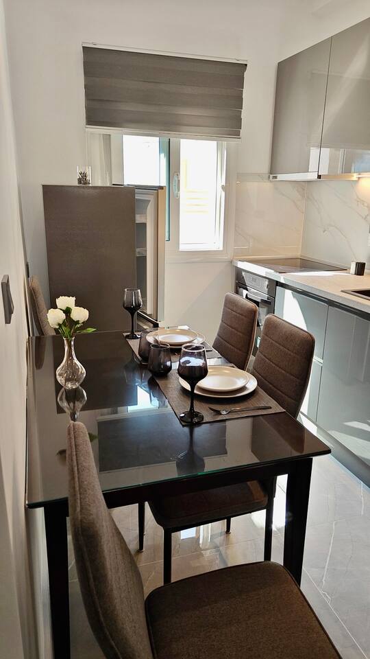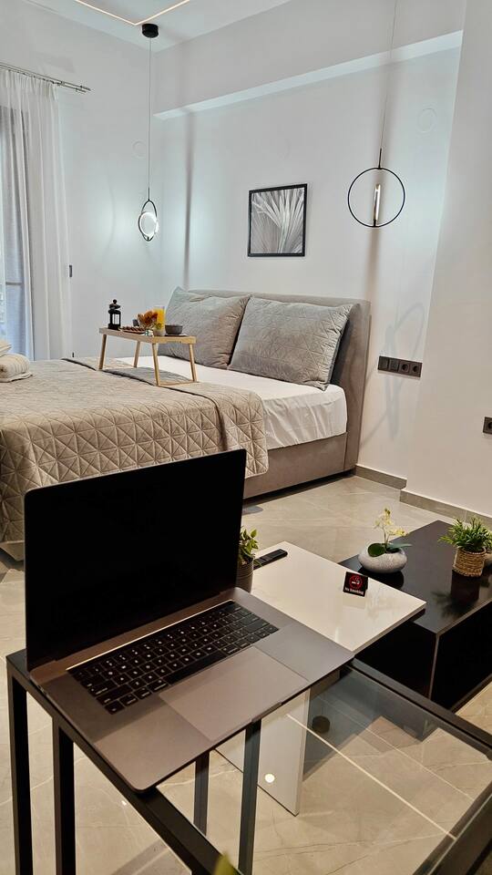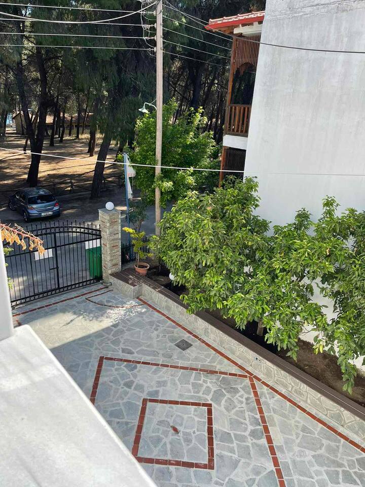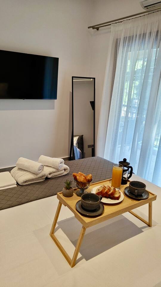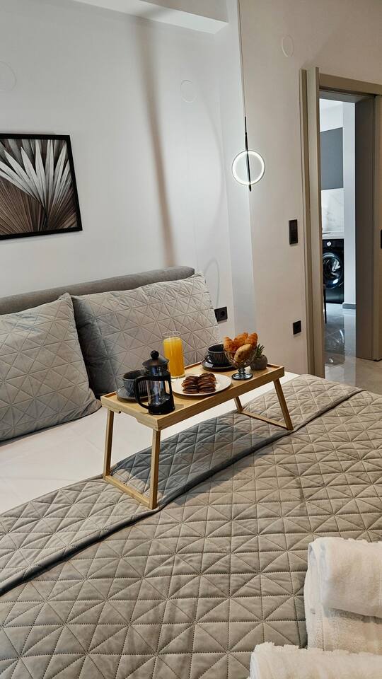 Looking for a luxury and comfortable getaway? Our newly renovated, two-bedroom apartment in Metamorfosi, is exactly what you need. The apartment is on the second floor, right across from the park with partial sea view, so you’ll have a lovely green view the moment you step outside. The apartment is modern and NEW, —there’s a shared yard where you can relax and a BBQ area for easy outdoor dinners.