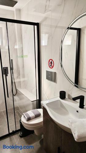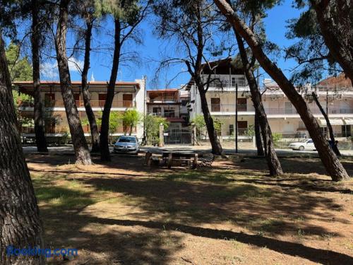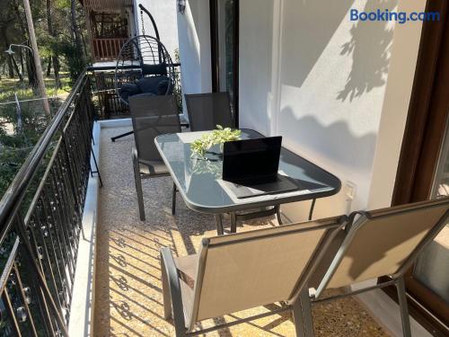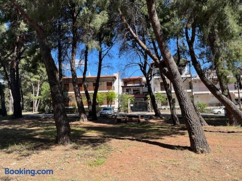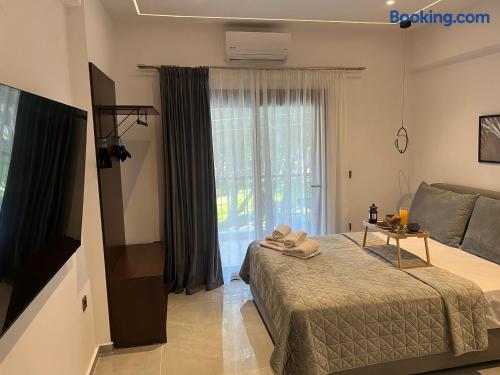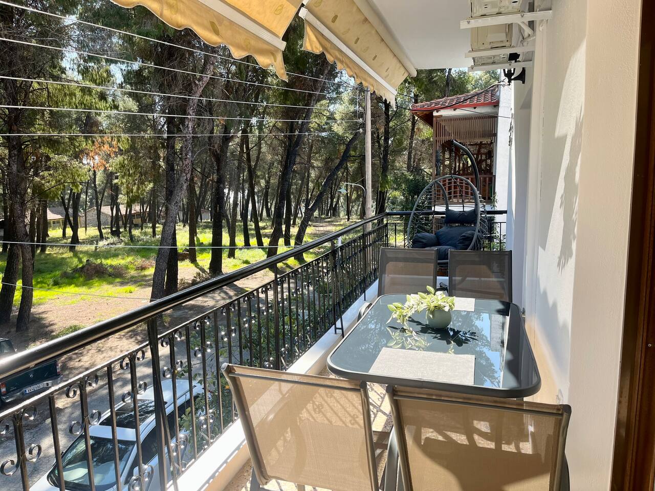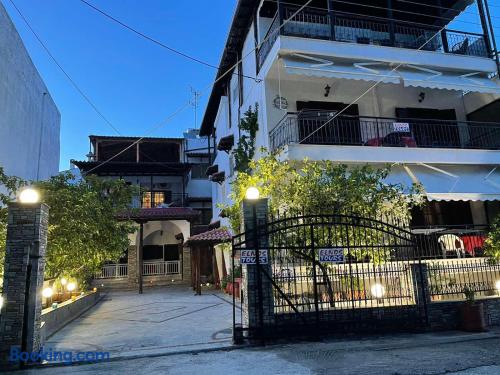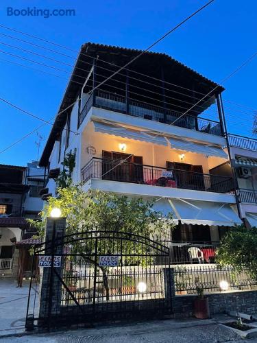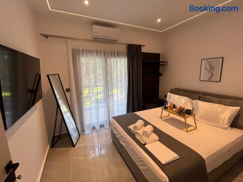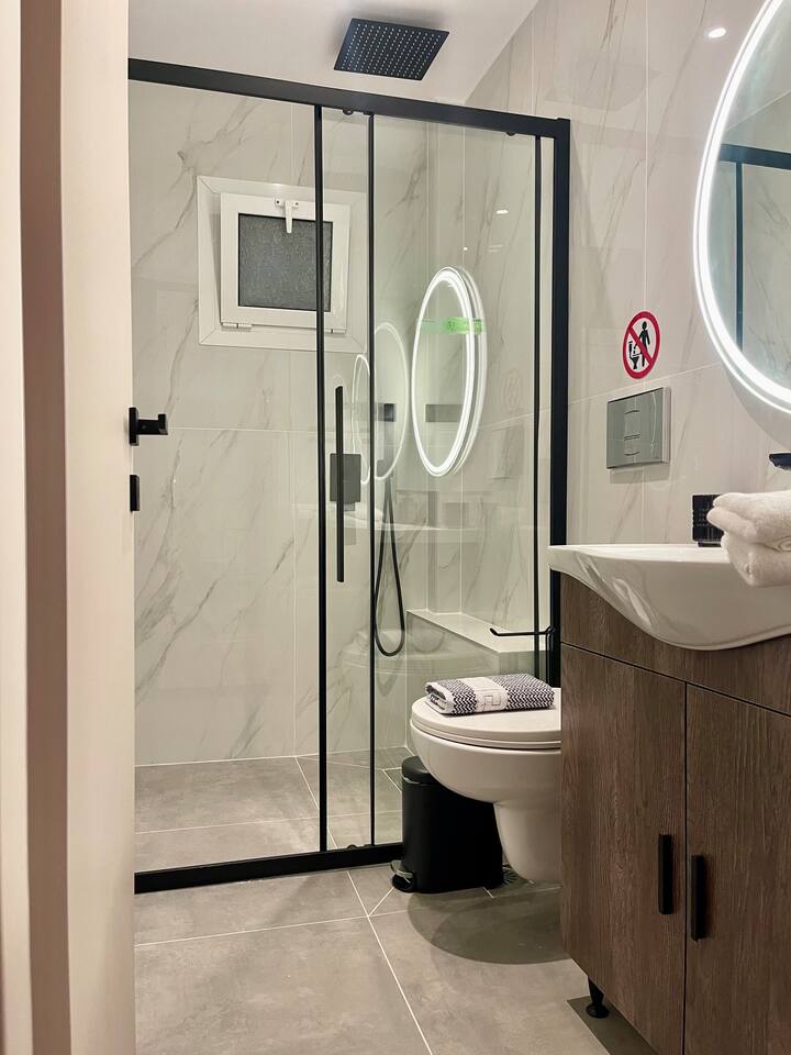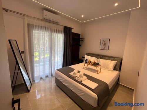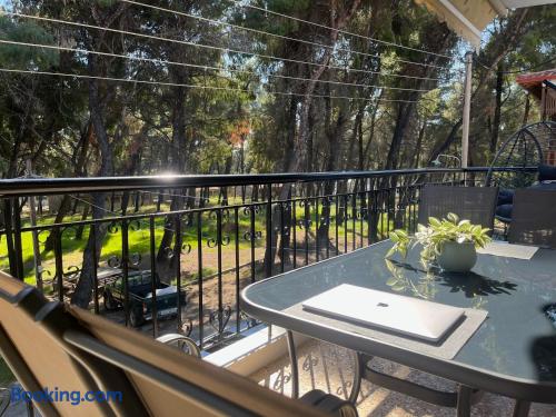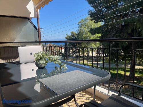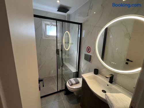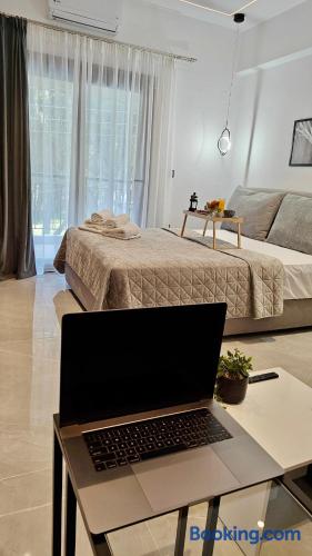 Looking for a luxury and comfortable getaway? Our newly renovated, two-bedroom apartment in Metamorfosi, is exactly what you need. The apartment is on the second floor, right across from the park with partial sea view, so you’ll have a lovely green view the moment you step outside. The apartment is modern and NEW, —there’s a shared yard where you can relax and a BBQ area for easy outdoor dinners.